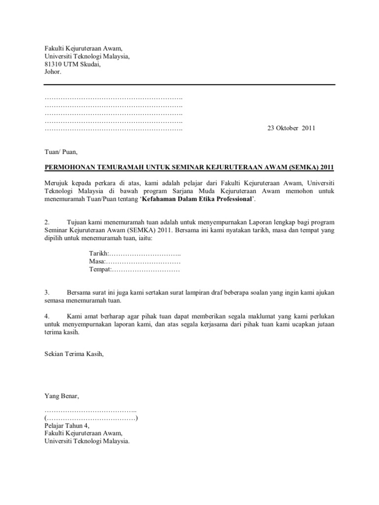 Format Of Surat Rasmi Lamaran P