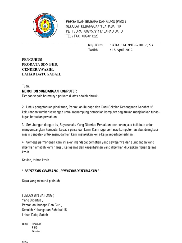 Surat Rasmi Memohon Sumbangan Derma Surat Rasmi O