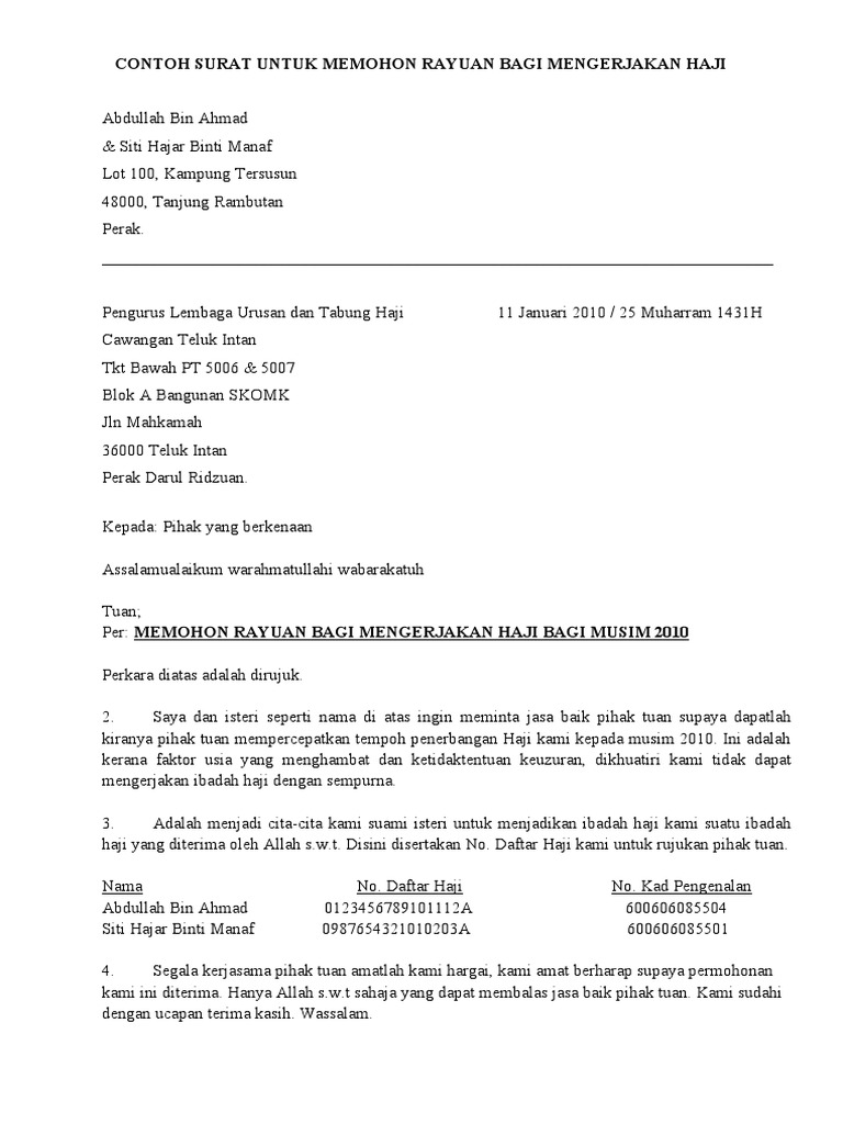 Surat Rayuan Haji Online Kerja Kosk