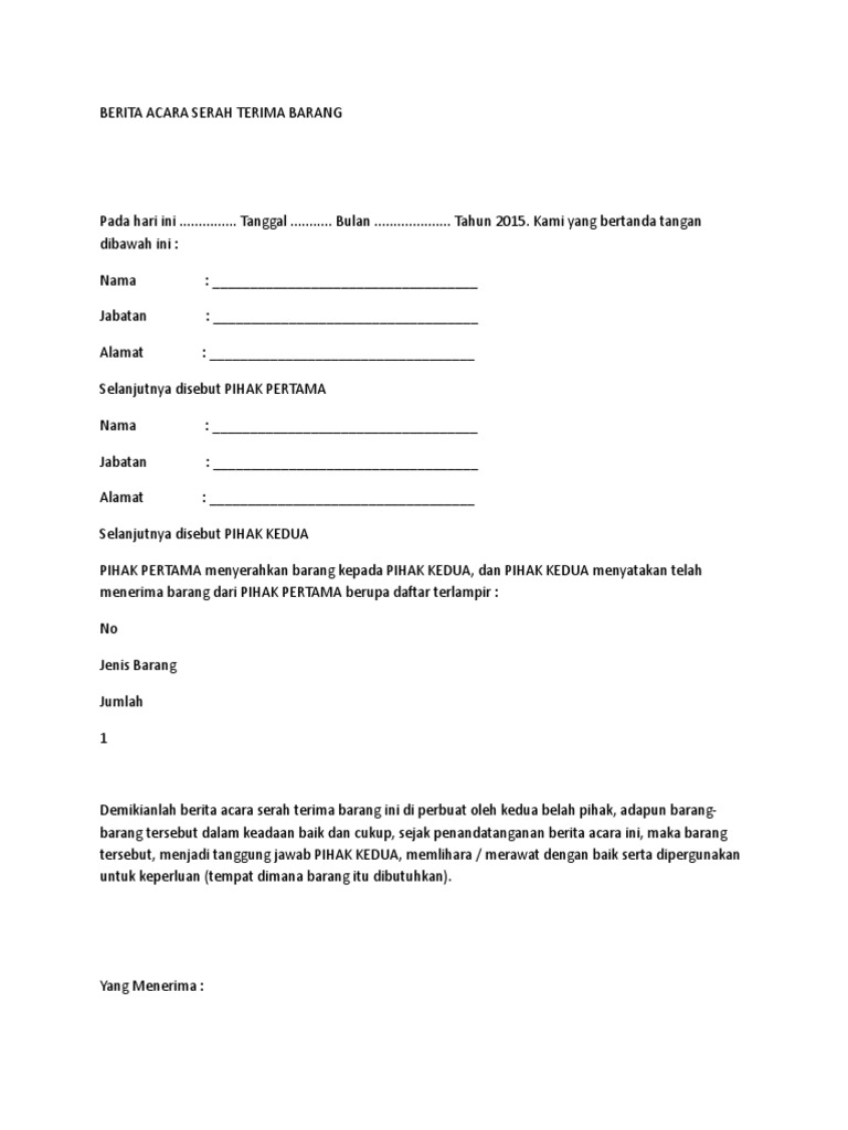 11 Contoh Berita Acara Serah Terima Barang Rapat Dan Kejadian