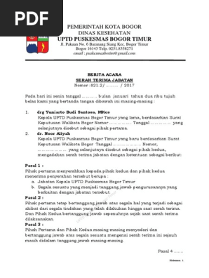 Contoh Berita Acara Serah Terima Kepala Puskesmas