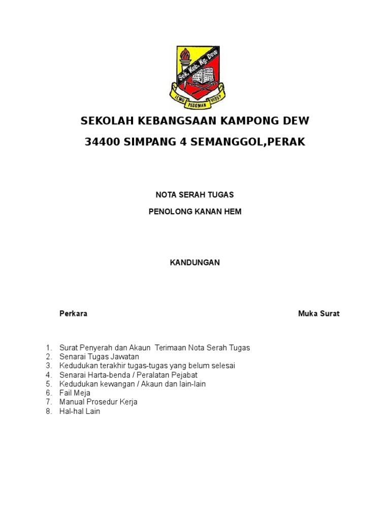 Contoh Nota Serah Tugas Perpindahan Guru