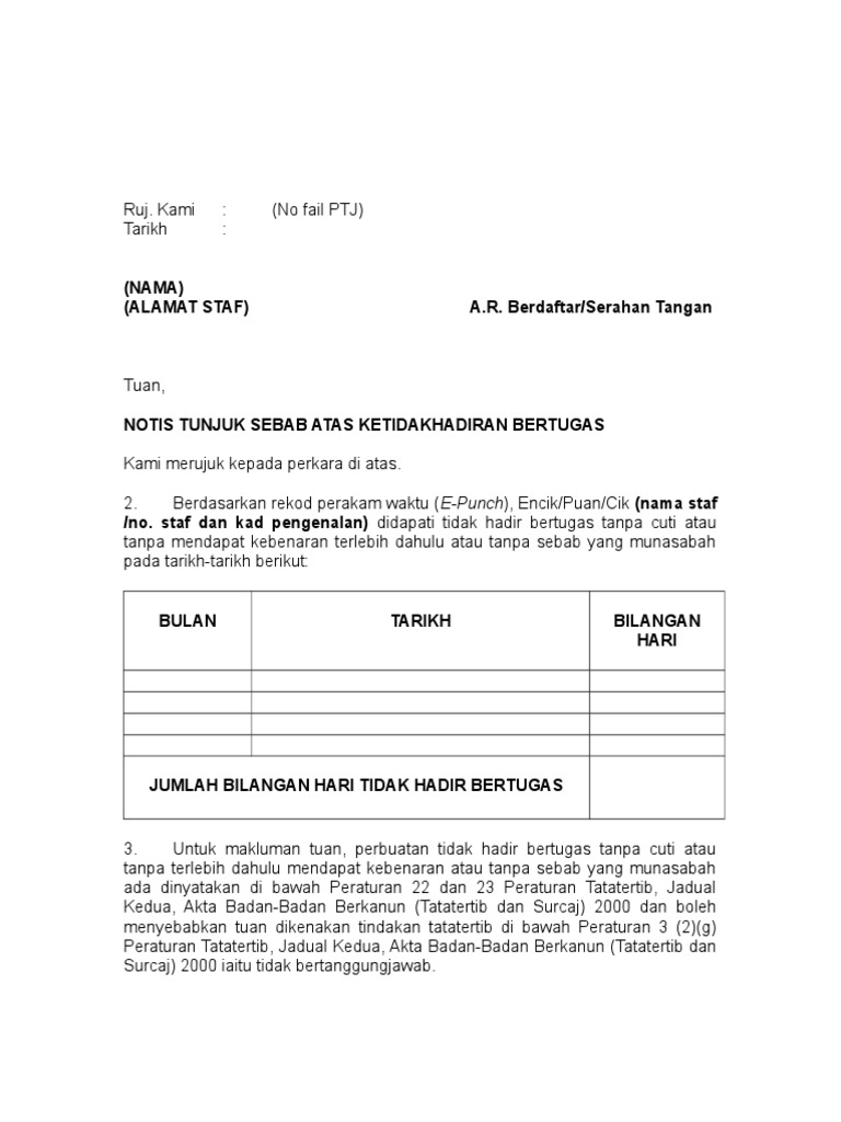 Contoh Surat Tunjuk Sebab Mudah Dan Ringkas Jawatan Kosong