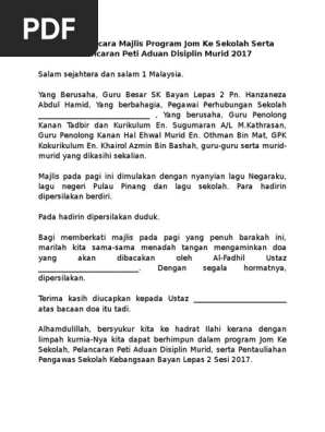 Doc Contoh Teks Pengacara Prgram Mahasiswa Cakna Komuniti Docx Solehulhafiz Suhaimi Academia Edu