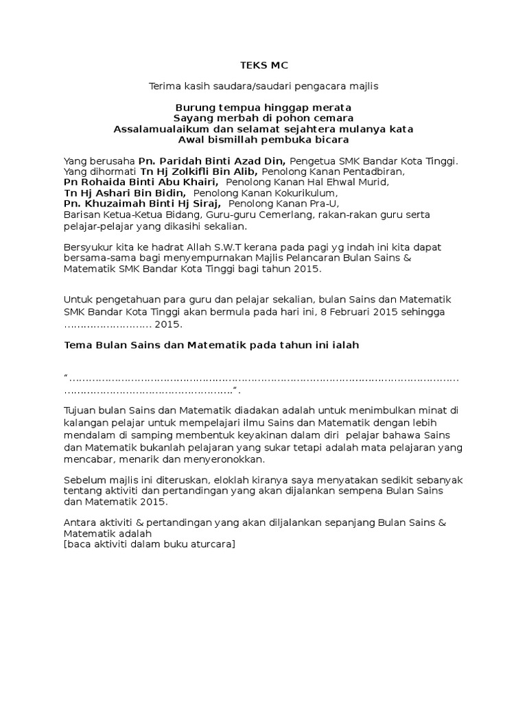 Teks Ucapan Pengacara Majlis