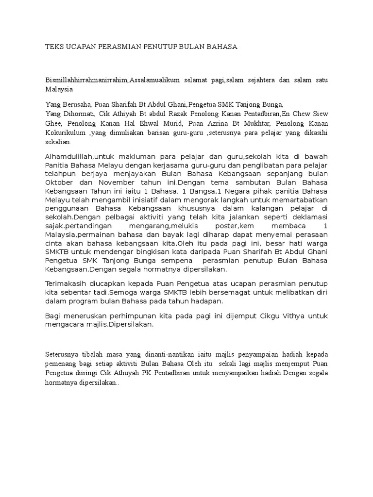 Teks Ucapan Perasmian Penutup