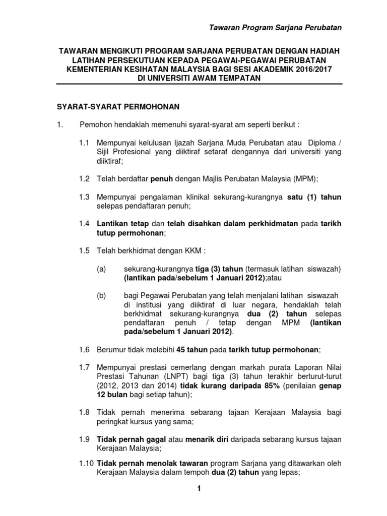 Https Ehlp Moh Gov My Documents Iklan Perubatan Syarat 20tawaran 20sarjana 20perubatan 20sistem 20bersepadu 20kkm 208 7 2019 Pdf