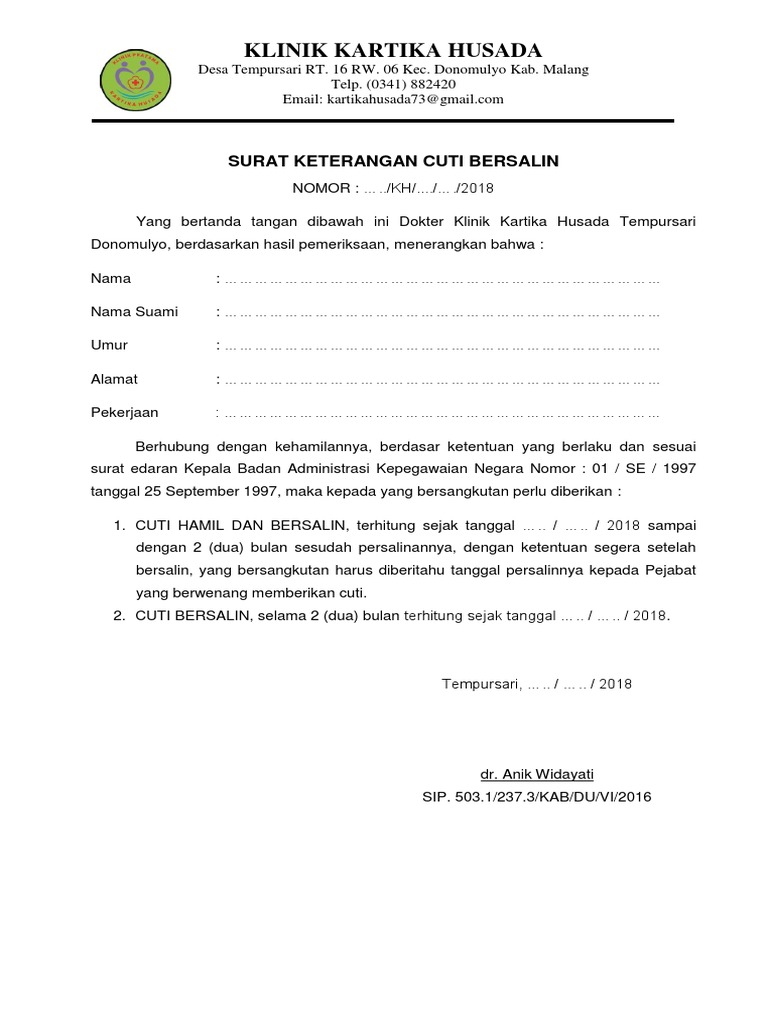 10 Contoh Surat Cuti Melahirkan Kerja Menikah Berbagai Keperluan