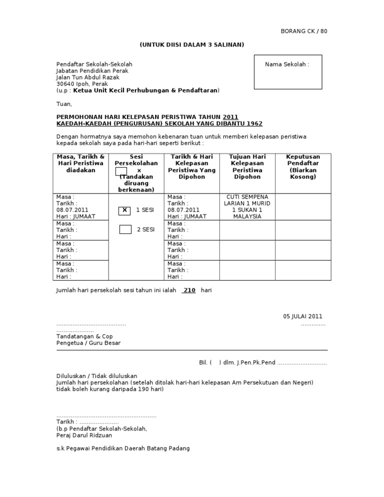 Contoh Surat Tidak Dapat Hadir Ke Sekolah Kerana Urusan Keluarga