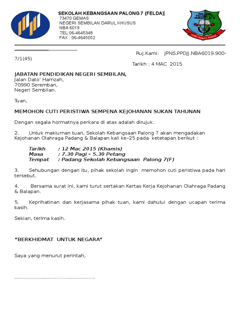 Makluman Cuti Peristiwa Sempena Sukan Sekolah Kebangsaan Ampangan Seremban Facebook