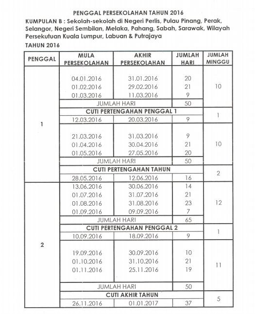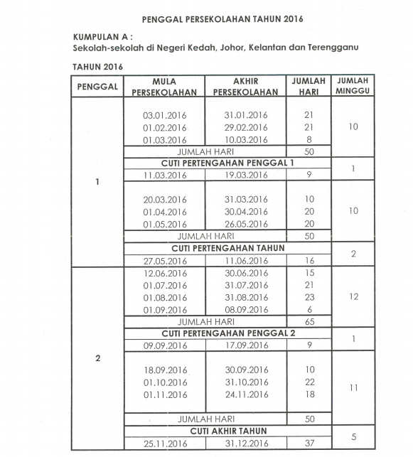 Segalanya Bermula Disini Cuti Sekolah 2016 Kalendar Takwim Penggal Persekolahan