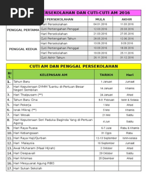 Penggal Persekolahan Dan Cuti Buku Rekod 2016