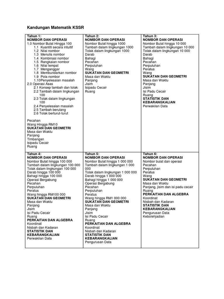 Kandungan Matematik Kssr