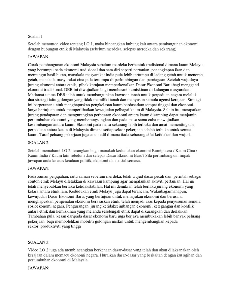Ctu555 Sejarah Malaysia Pembangunan Ekonomi Dalam Konteks Hubungan