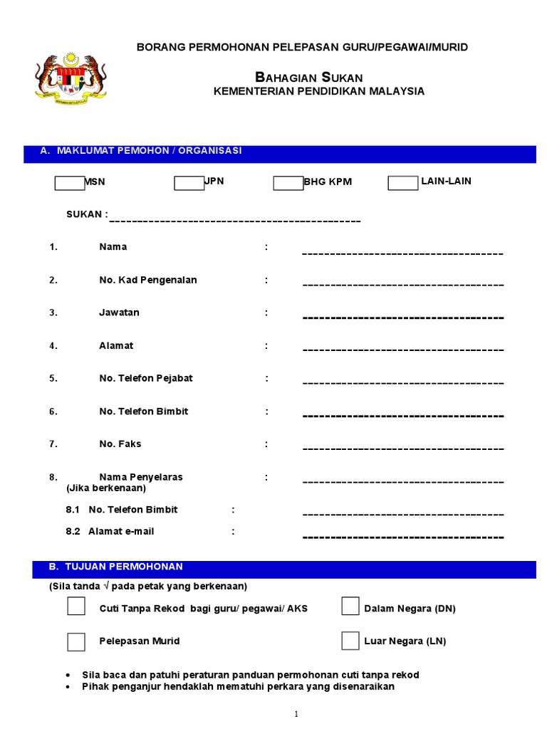 Borang Permohonan Pelepasan Guru Dan Murid Doc
