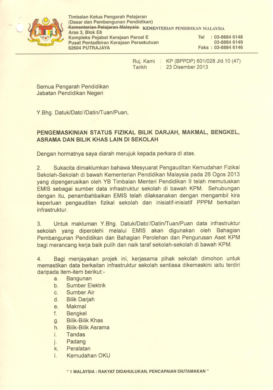 Memo Pengisian Keadaan Fizikal Dan Pendawaian Bilik By Aja351 Flipsnack