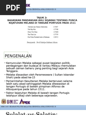 Isi Kandungan Mukasurat 1 Pendahuluan 2 2 Faktor Faktor Yang Menyumbang Kejatuhan Kesultanan Melaka 3 Hingga 6 3 Pengajaran Daripada Daripada Kejatuhan Melaka 7 Hingga 8 Chell Mn Academia Edu
