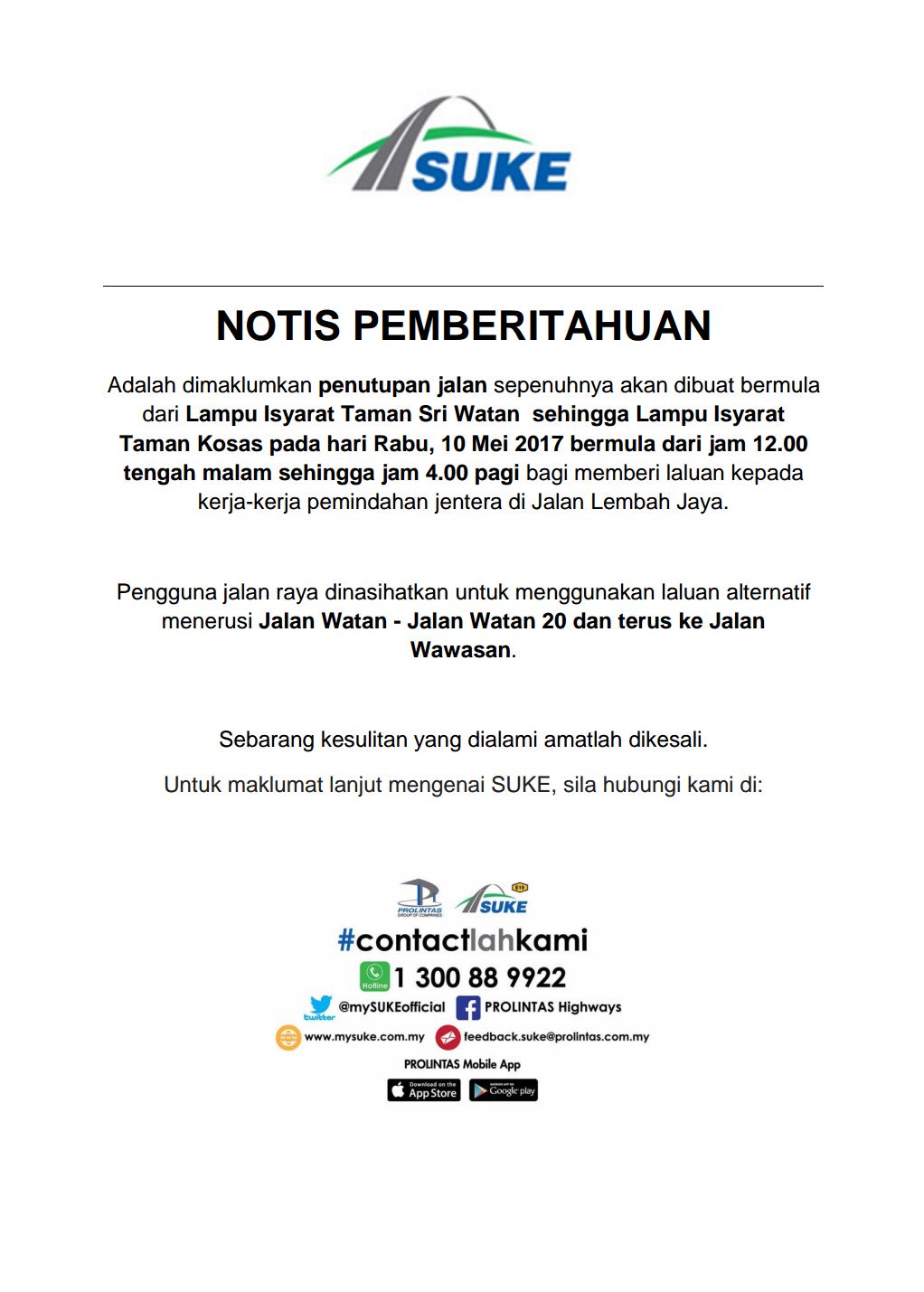 Suke Expressway On Twitter Notis Pemberitahuan Penutupan Jalan Kltu Astrotraffic Wazetraffickl Llminfotrafik Itisdbkl Llmrasmi Suke Prolintas Contactlahkami Https T Co Cem5svy7ii